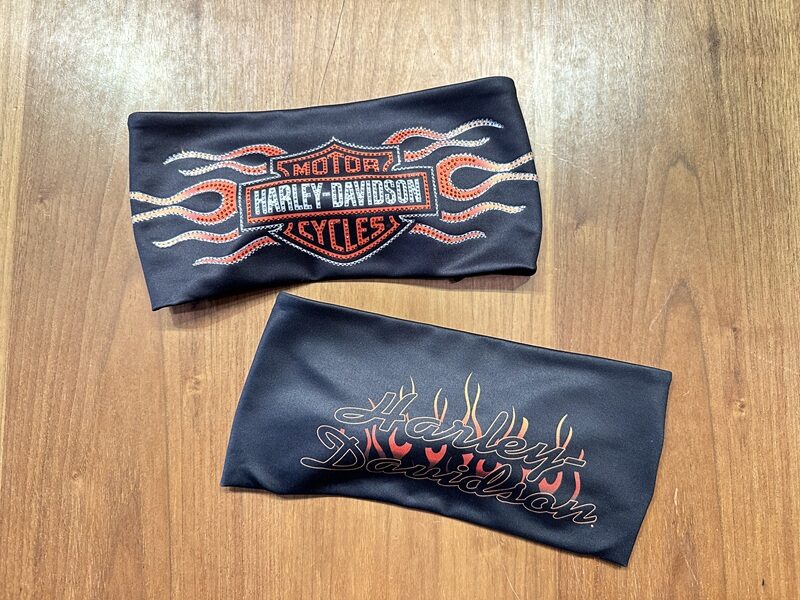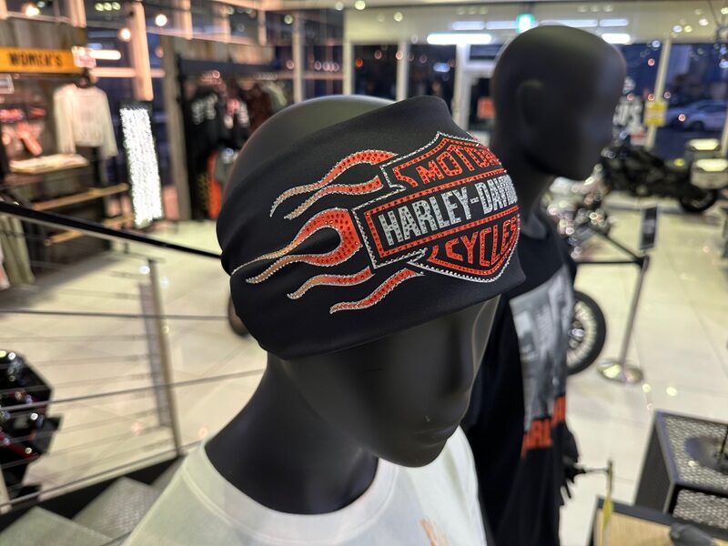 お馴染みラインストーンがあしらわれたキラキラB&SロゴとフレアモチーフにHARLEY-DAVIDSONロゴがプリントされたデザインの2種類をご用意しております。