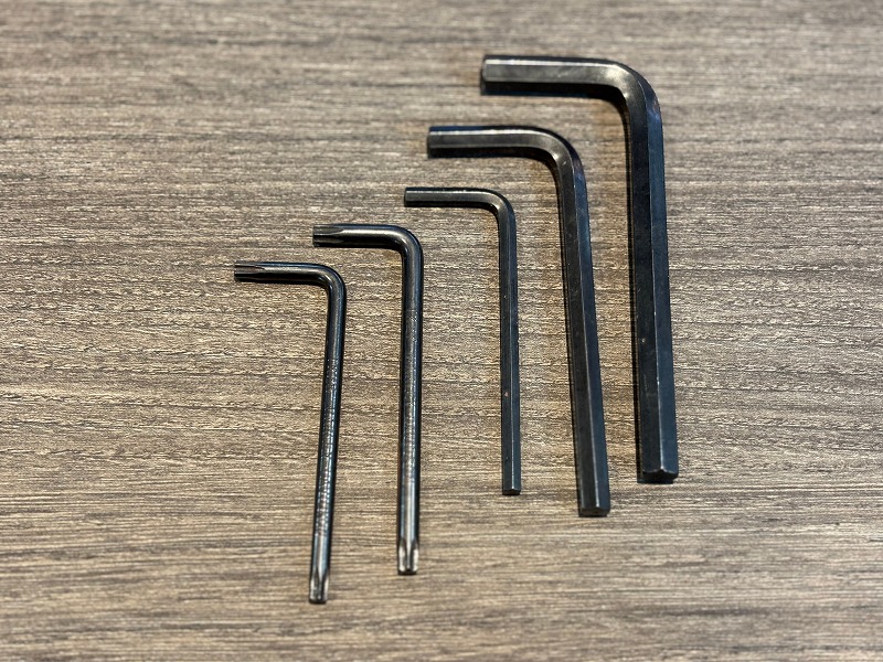 登場頻度はそこまで多くはないかと思いますが念のため。純正スイッチボックス周りの増し締めにT25・T27は必須です。六角レンチは5/32・1/4・5/16は持ち歩きましょう。特にM8ソフテイルでサイドカバー内にETCを収納している方は5/32は必須ですね。