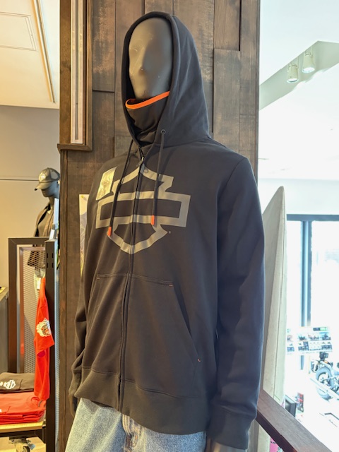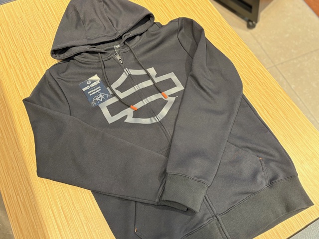 フロントに大きくバー&シールドのプリントと、裾元のリブにハーレーのロゴデザイン