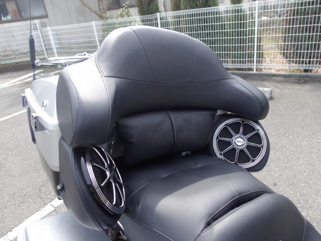 オーディオ、前後スピーカーも標準装備で、ロングツーリングも飽きずに走行可能です。